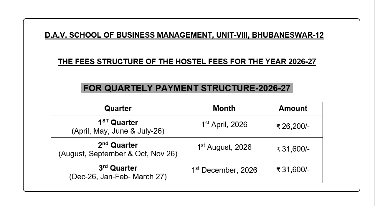 D.A.V. School of Business Management comes under SAMS (Student Academic Management System) Admission System, Department of Higher Education, Govt. of Odisha.